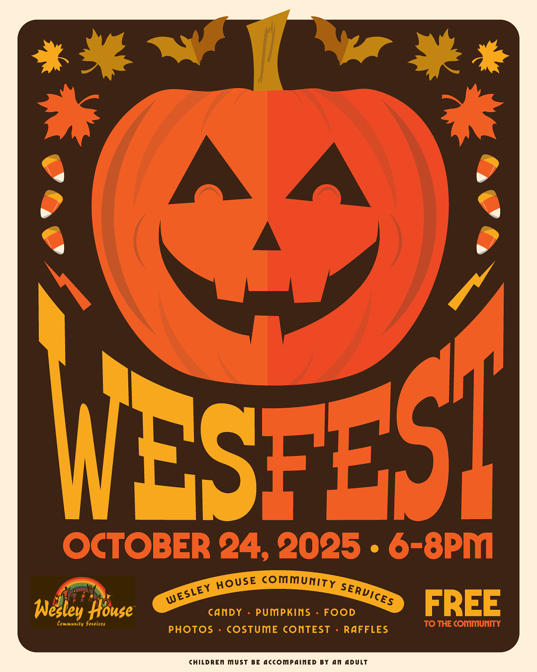 Our annual Fall Community Festival returns on Friday, October 24th, from 6:00 pm to 8:00 pm. Bring your family for fun, games, costumes, and community resources. We need open bags of candy and additional volunteers. If you’re interested in volunteering, please contact us at info@wesleyhouseky.com.